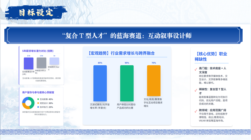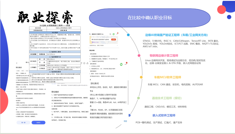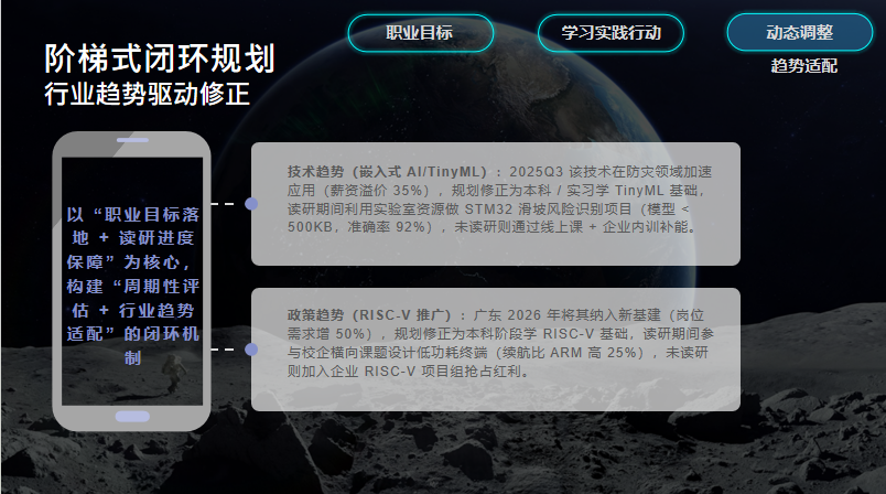 成长赛道选手们聚焦职业目标、学习实践行动、优化改进三大评分要点,将个人职业目标与国家需求、行业发展紧密结合,通过行业调研数据、个人能力匹配分析、阶段性实践成果及动态调整方案,呈现出科学完整的成长规划体系。