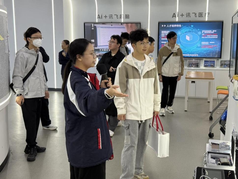 活动伊始,学院领导和老师陪同校友们参观广州新华-科大讯飞机器人与AI产业学院。讲解员生动讲解人工智能成果与产教融合实践,现场亮点纷呈,校友们兴趣盎然,纷纷驻足体验、深入交流。